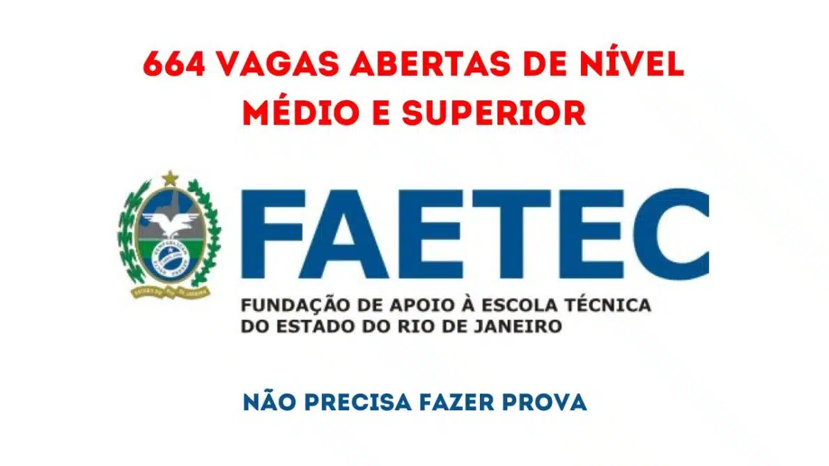 A Fundação de Apoio à Escola Técnica (FAETEC), do estado do Rio de Janeiro, está com as inscrições abertas para um novo processo seletivo em 2024, oferecendo 664 vagas em diversos cargos de níveis médio e superior. Além das vagas imediatas, a instituição também formará cadastro de reserva para futuras convocações, conforme as necessidades administrativas ao longo do período de validade do certame.