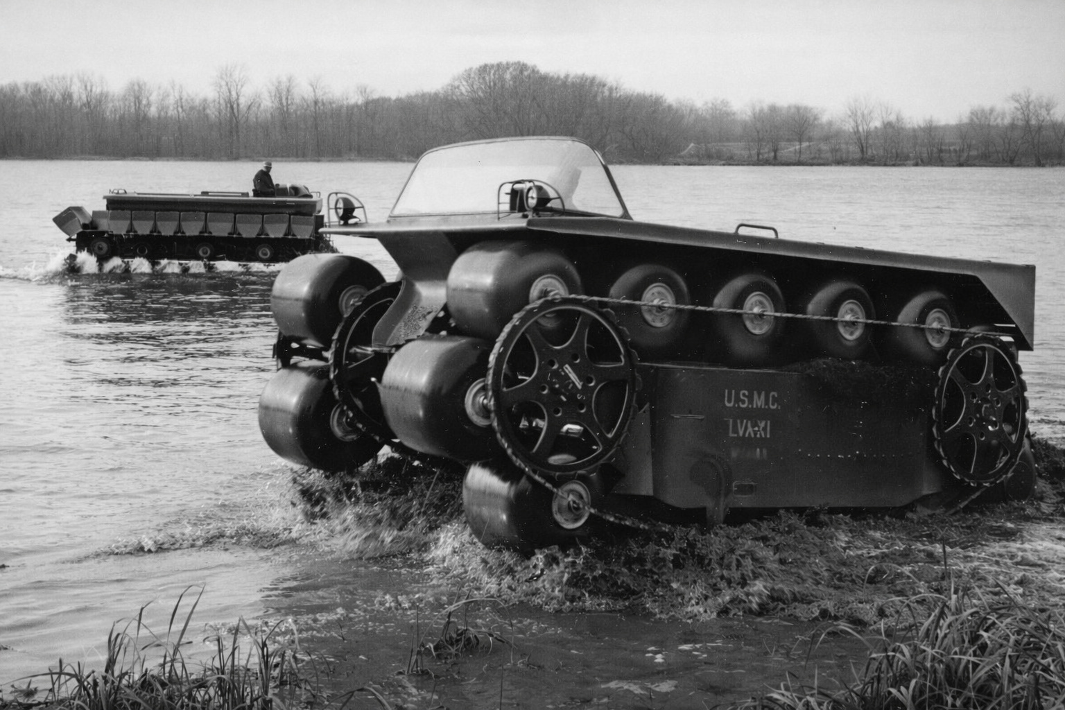 - Capacidade anfíbia natural: Como os pneus eram preenchidos com ar, eles forneciam flutuabilidade, permitindo que o veículo navegasse sem a necessidade de estruturas adicionais.